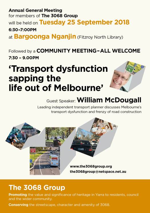 The 3068 Group invites all members and supports to attend tonight’s Council Meeting (Tuesday 22nd November) to add your support to the following important motions that were endorsed at a public meeting last Thursday.